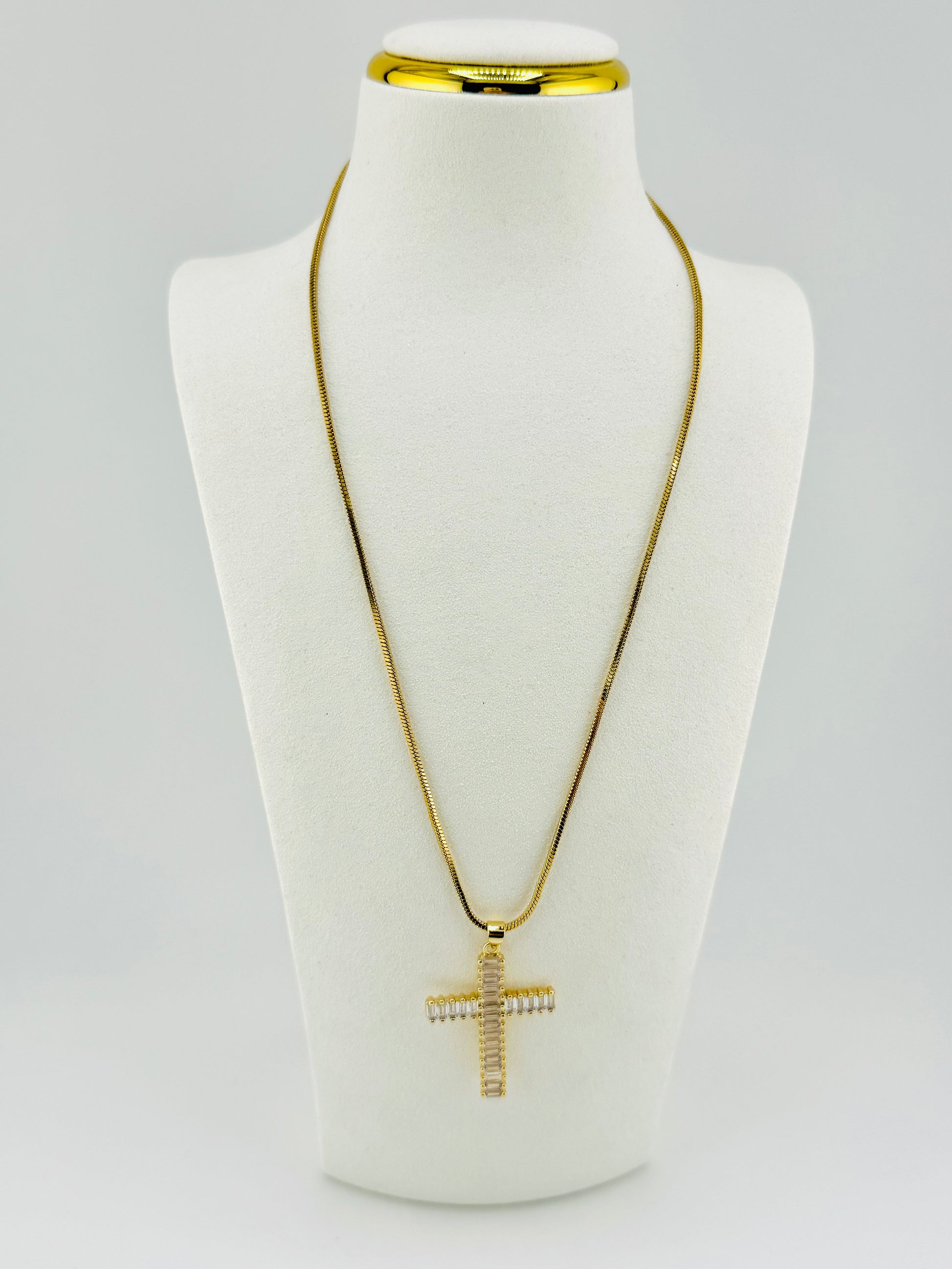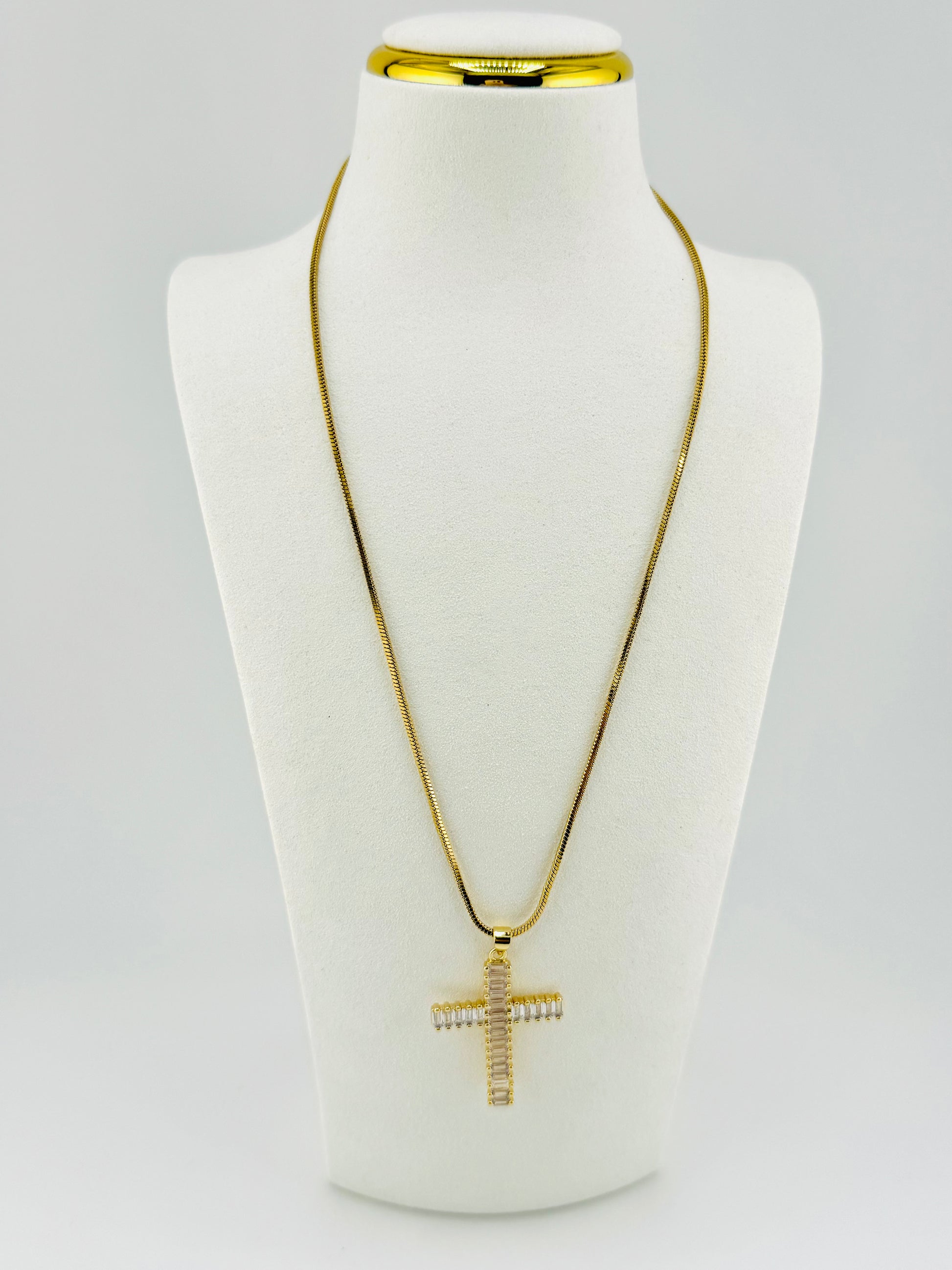 This elegant Cunic necklace features sparkling zirconia stones set in 18k gold-filled metal, symbolizing purity and grace. Its oversized design reflects bold faith and commitment, making it a meaningful accessory to complement your spiritual journey and daily devotion. Durable yet radiant, this necklace is a beautiful reminder of divine love and strength.