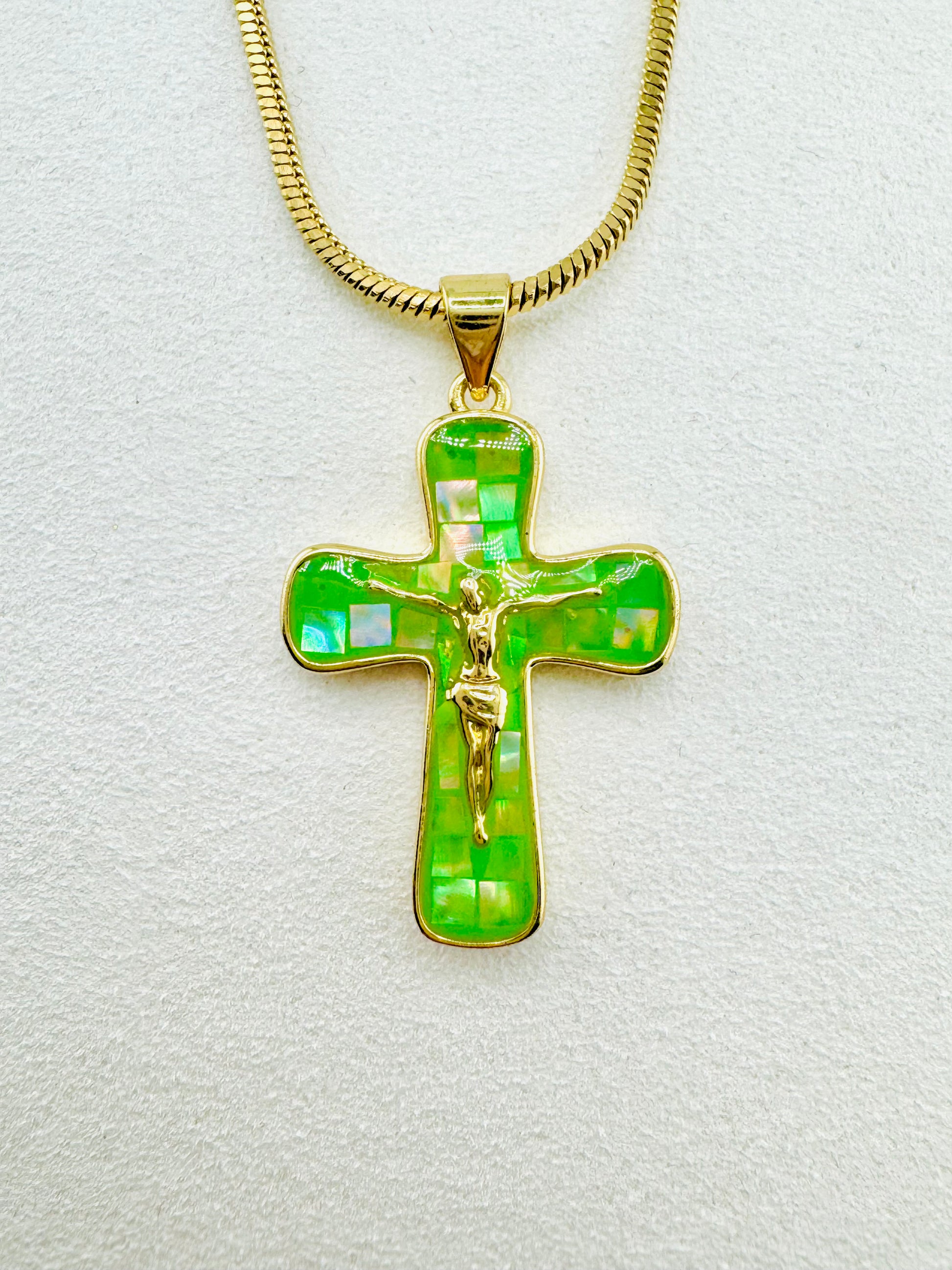 This elegant green mother of pearl necklace, set in 18k gold-filled chain, reflects natural beauty and grace. Its luminous pendant symbolizes renewal and faith, making it a meaningful accessory for daily wear or special occasions. Crafted to last, this necklace is a subtle reminder of God’s creation and enduring love.