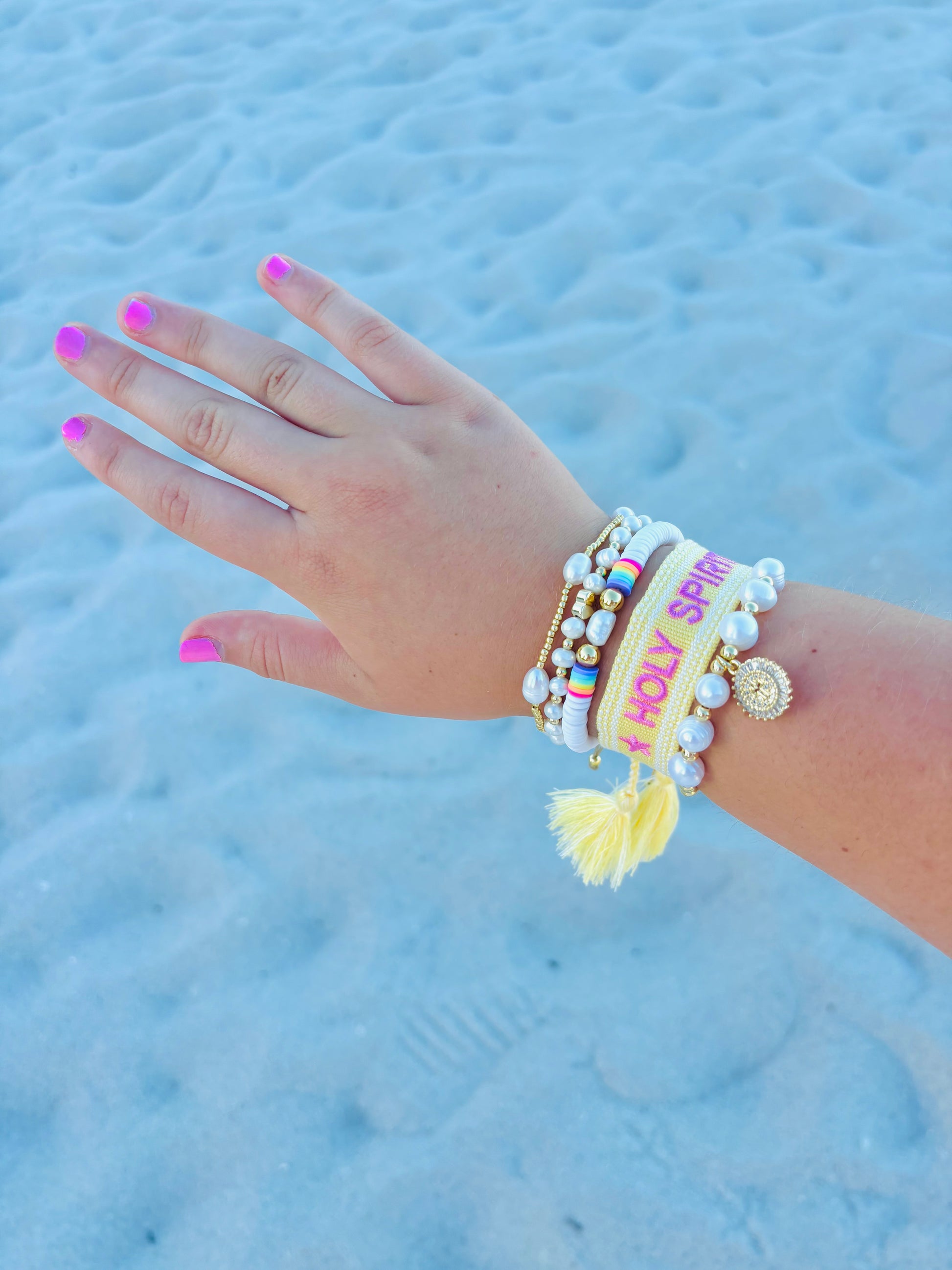Introducing our Holy Spirit woven bracelet. Crafted with intricate detail, this bracelet is a symbol of faith and spirituality. Made with high-quality materials, it serves as a reminder of the Holy Spirit's presence in our lives. Perfect for everyday wear or as a special gift, experience the divine power with this beautiful bracelet.