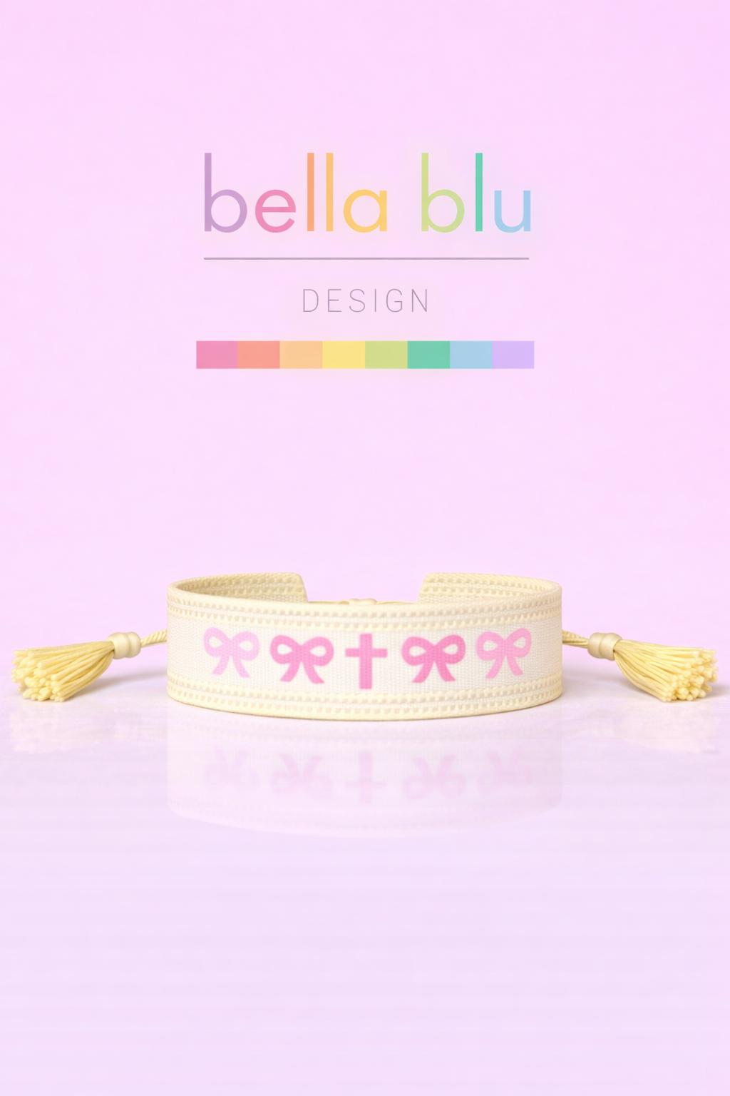 The Katie pink bow and cross woven adjustable bracelet is a charming accessory that captures the essence of timeless elegance. Featuring delicate bow and cross details woven together with care, this bracelet evokes memories of simpler times while remaining perfectly suited for modern everyday wear. The adjustable design ensures a comfortable fit for all wrist sizes, making it an inclusive choice for anyone seeking a touch of vintage-inspired beauty. What truly sets this piece apart is its practical washable construction. Unlike delicate jewelry that requires special care, this bracelet can be easily cleaned alongside your regular laundry, maintaining its vibrant pink hue and intricate weaving without fuss. This thoughtful design means you can wear it confidently through all your daily adventures—from casual outings to meaningful moments—without worry. The durability and low-maintenance nature of the bracelet make it a reliable companion that grows more meaningful with time, much like cherished keepsakes passed down through generations.