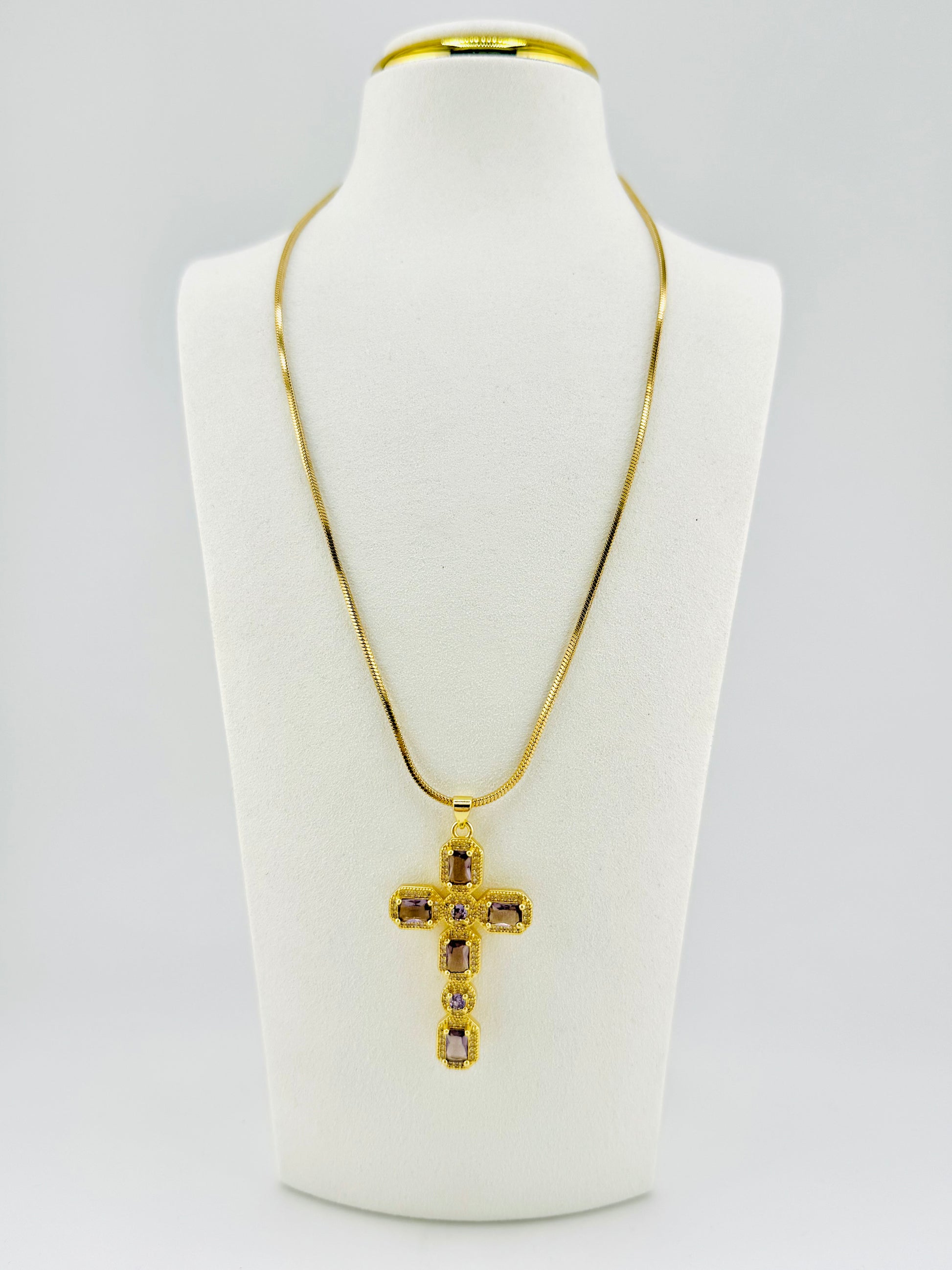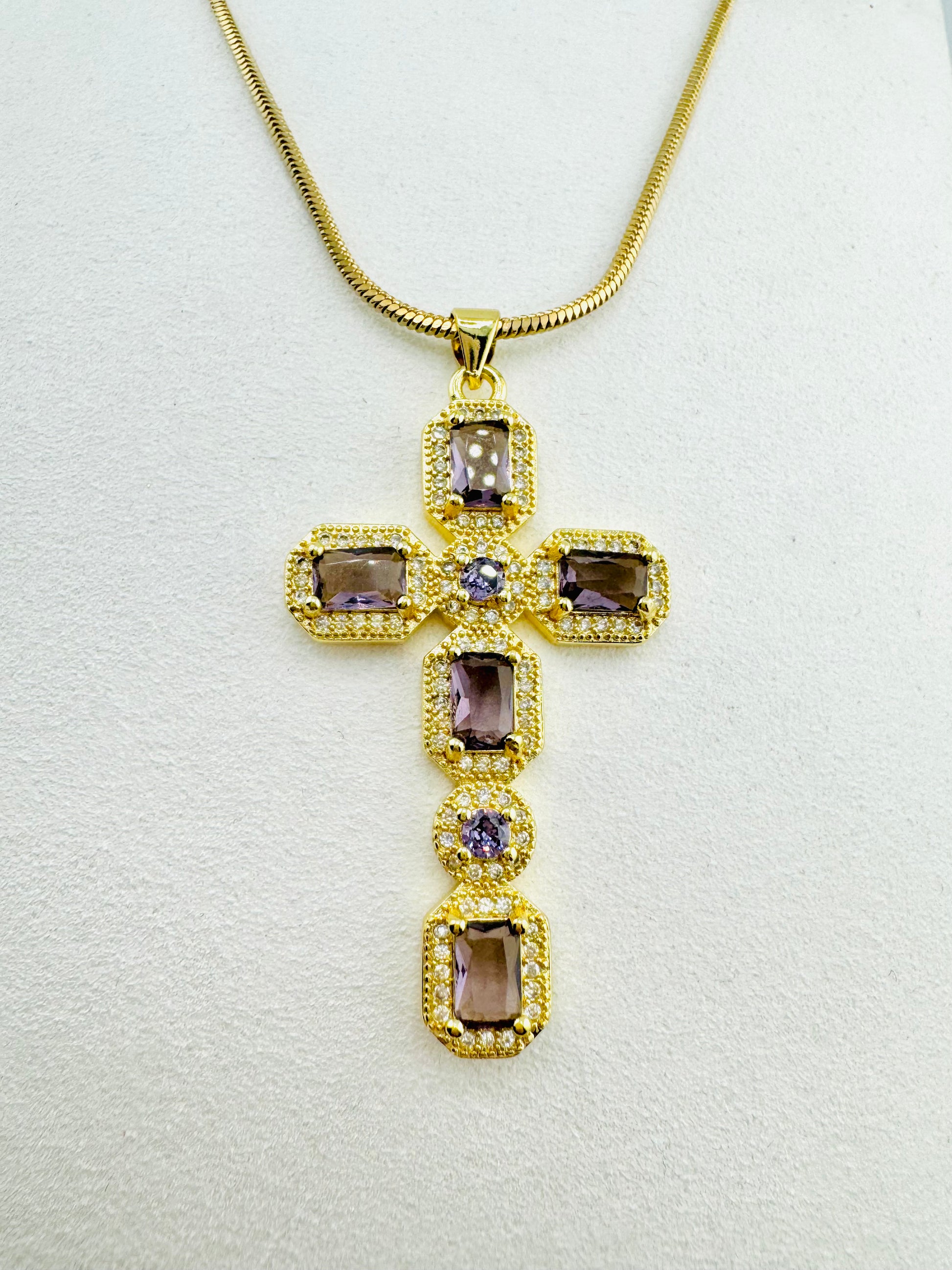 This elegant necklace features a sparkling lavender cubic zirconia set in 18k gold-filled metal, symbolizing grace and purity. Designed to complement your faith and style, it serves as a beautiful reminder of God’s love and light in your life. Perfect for daily wear or special occasions, it adds a gentle touch of inspiration and beauty to any outfit.