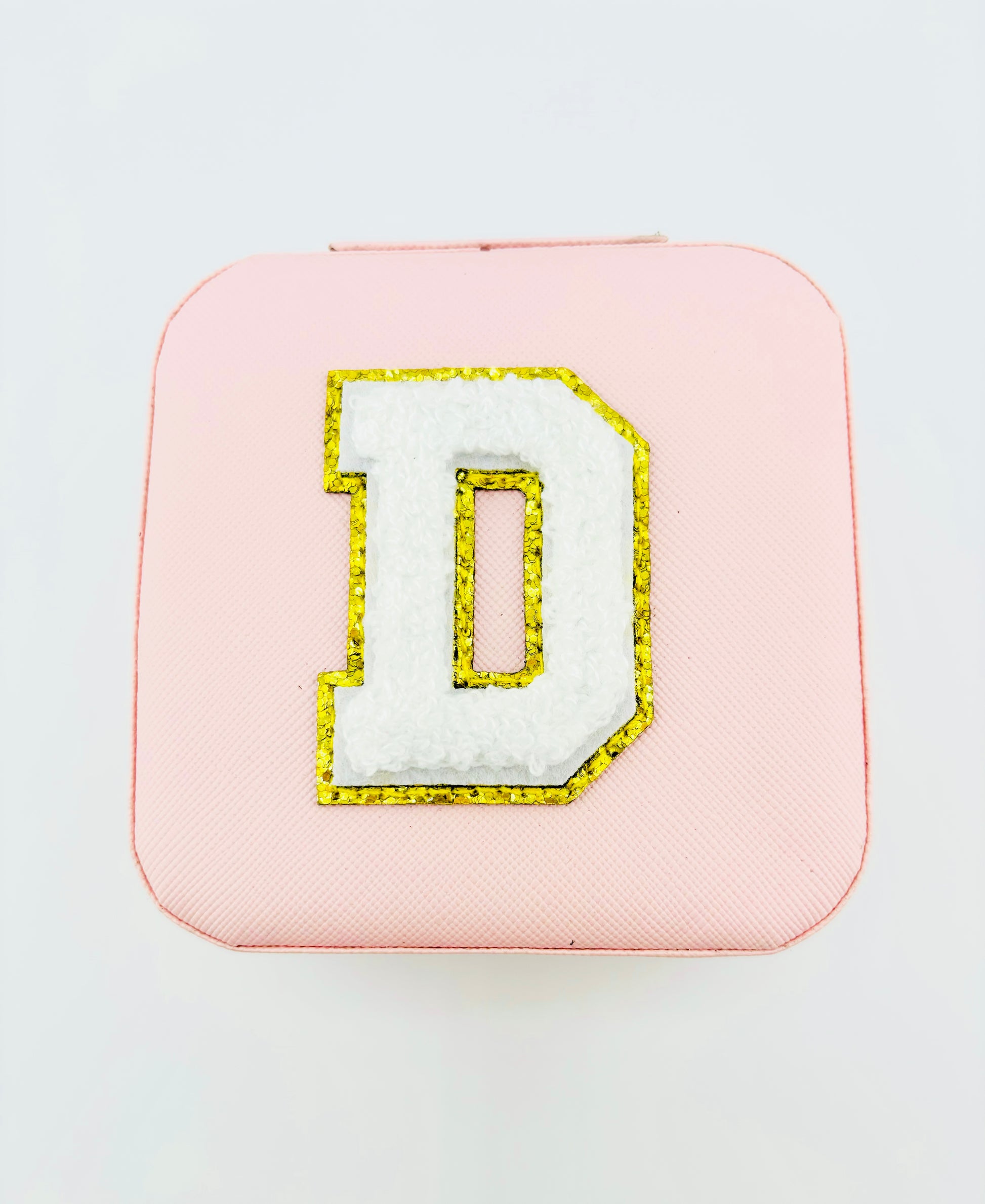 Letter D travel jewelry case in pink