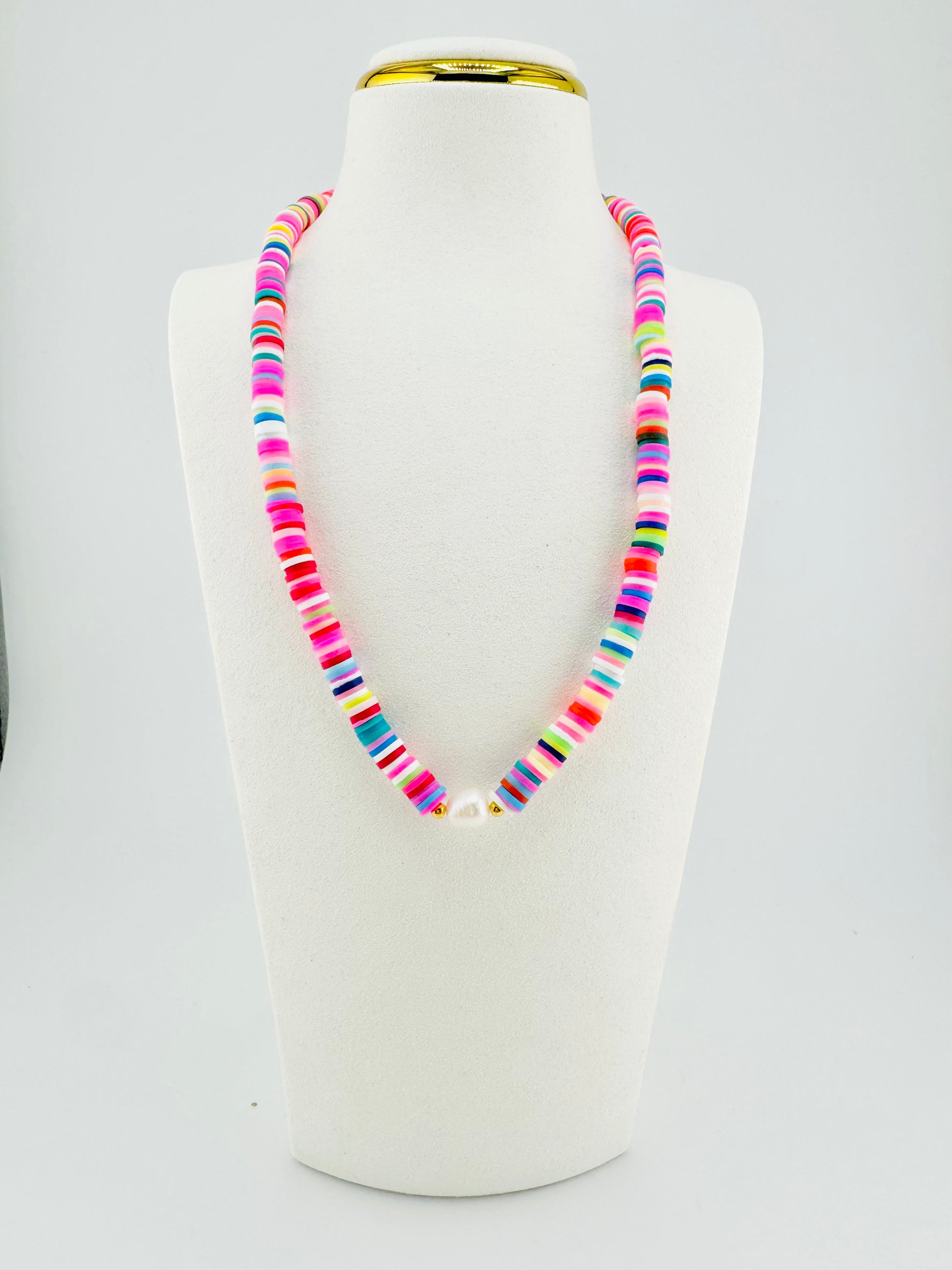 This multicolor heishi necklace, adorned with genuine fresh water pearls, combines vibrant beauty and natural elegance. Each pearl reflects purity and grace, reminding you of faith’s enduring light. Wear this bracelet as a symbol of spiritual harmony and joyful expression, perfect for everyday inspiration or meaningful gifts.