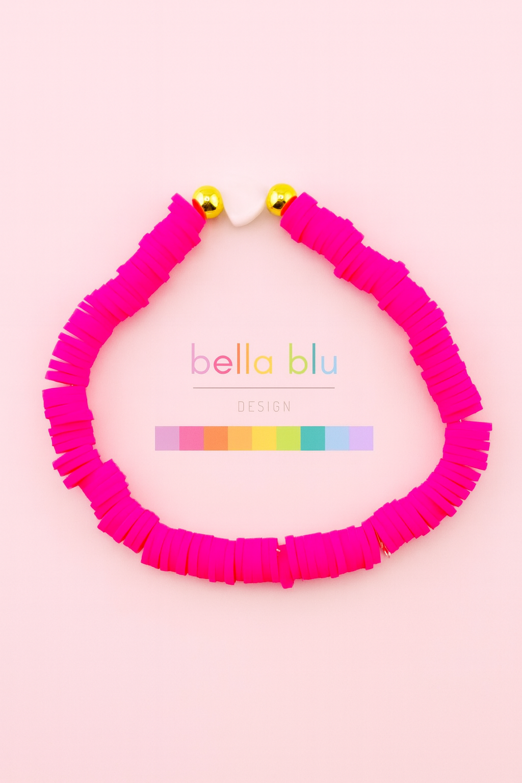 Make a bold statement with our Vanessa bracelet, where vibrant hot pink clay beads dance alongside elegant mother of pearl and premium 18k gold filled elements. This striking combination creates an irresistible accessory that demands attention while maintaining sophisticated charm. Perfect for adding a pop of color to any ensemble, this bracelet effortlessly blends playful energy with luxurious materials that elevate your everyday style. Don't miss the opportunity to own this captivating piece that embodies both fun and refinement.