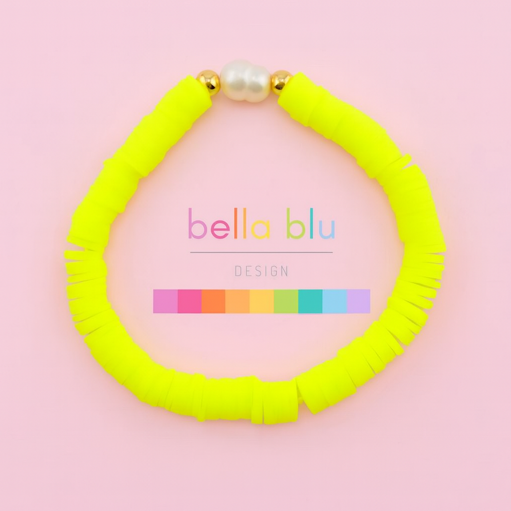 Vanessa neon yellow clay beaded fresh water pearl and 18k gold filled bracelet