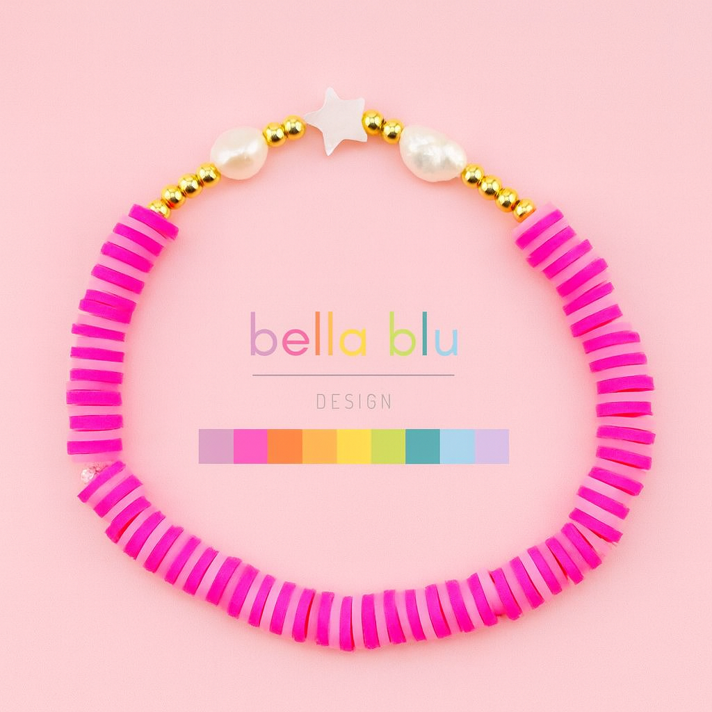 Elevate your style with our Vanessa bracelet, featuring delicate pink clay beads, lustrous freshwater pearls, and luxurious 18k gold-filled accents. This stunning piece transitions effortlessly from casual daywear to elegant evening occasions, adding a touch of refined glamour to any ensemble.